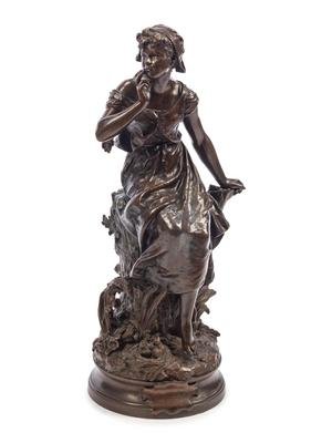 signed Hip. Moreau and with plaque inscribed Chant de l'alouette/ Par Hte. Moreau/ Médaille au Salon