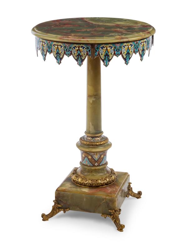 A French Onyx, Champlevé and Gilt Bronze Mounted Side Table