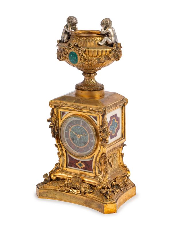 A French Gilt and Silvered Bronze Mounted Specimen Marble Mantel Clock