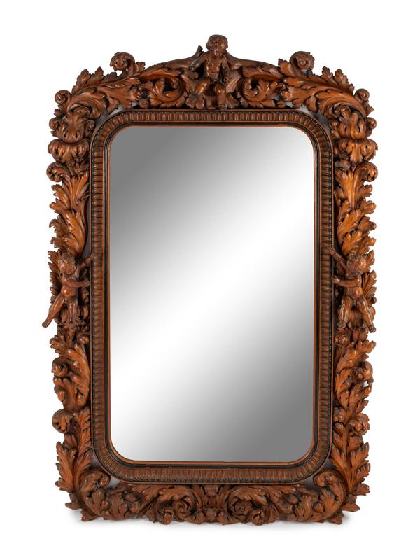 An Italian Carved Walnut Mirror