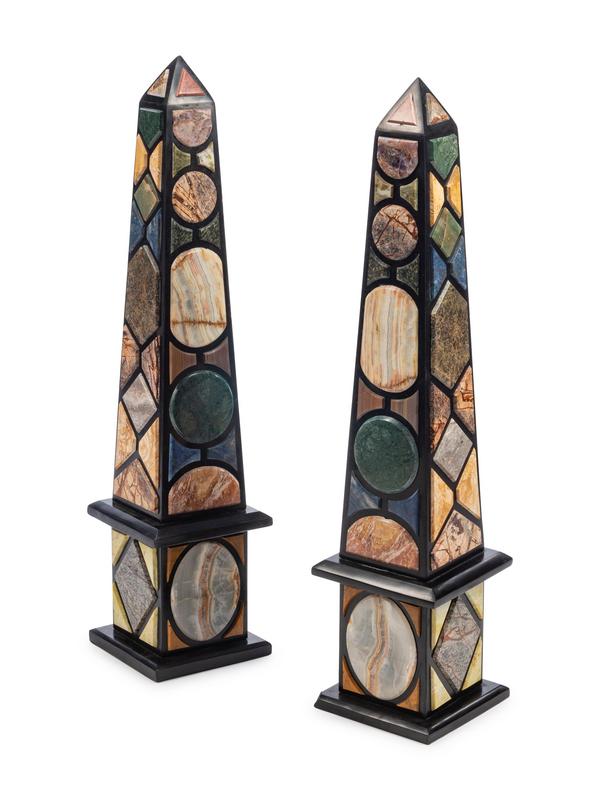 A Pair of Grand Tour Style Specimen Marble Obelisks