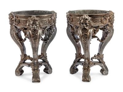 A Pair of Pompeian Style Silvered Metal Jardinières