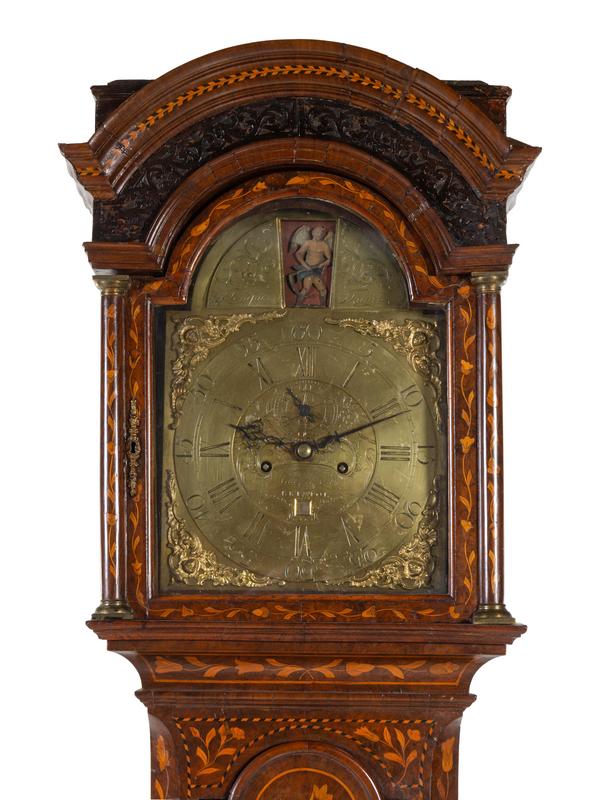 the case surmounted by a figure of Father Time, the dial inscribed Mattw. Worgan, Bristol.
