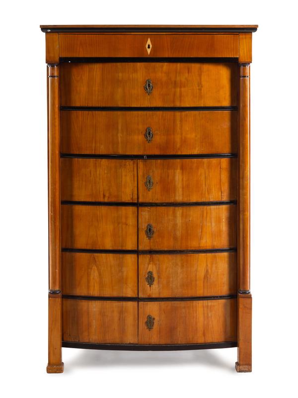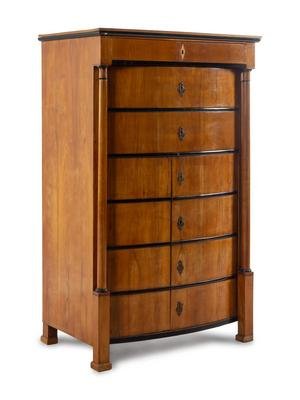 A Biedermeier Parcel Ebonized Walnut Tall Chest of Drawers