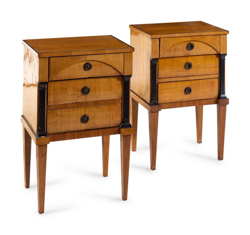 A Pair of Biedermeier Parcel Ebonized Birch Nightstands
