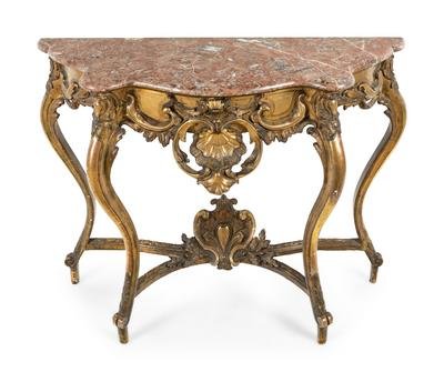 A Louis XV Style Giltwood Marble-Top Console Table