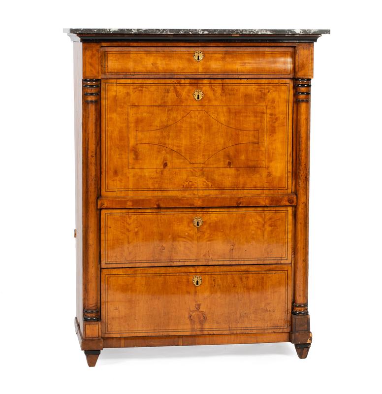 A Continental Parcel Ebonized Birch Secrétaire à Abattant
