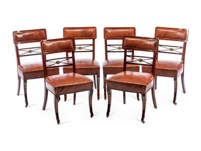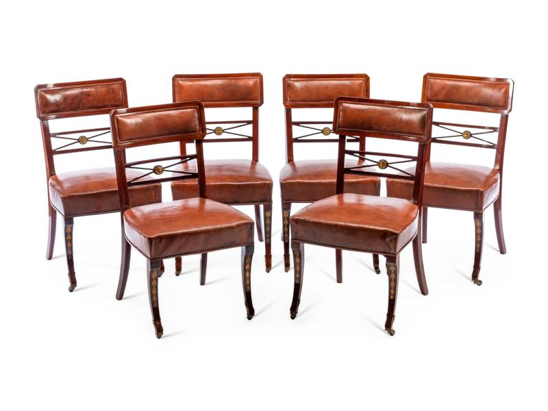 A Set of Six Baltic Marquetry Decorated Dining Chairs