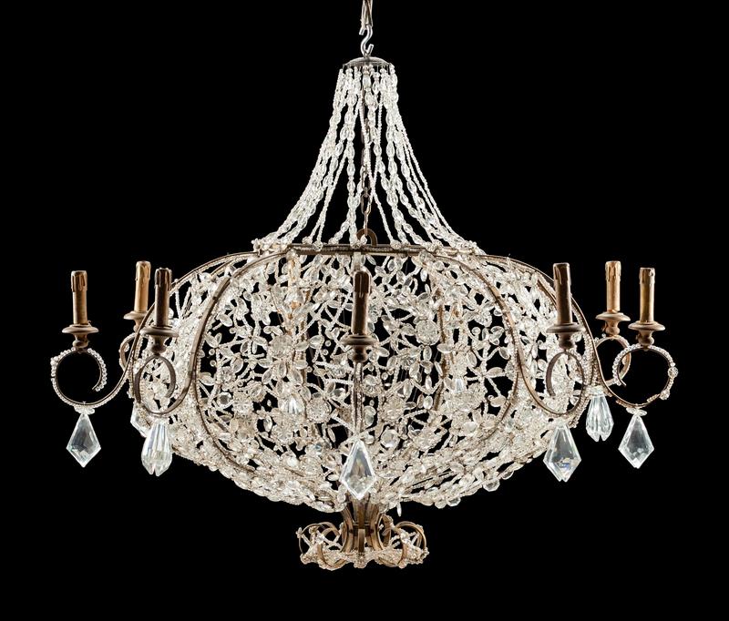 A Continental Gilt Metal and Beaded Nine-Light Chandelier