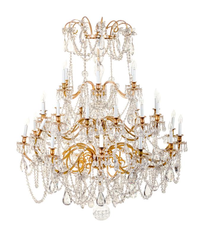A Continental Gilt Metal Thirty-Light Chandelier