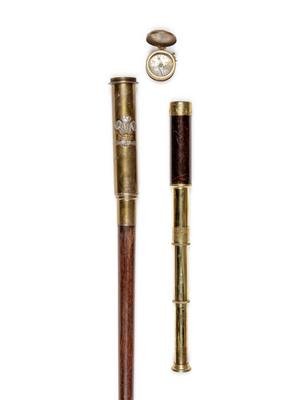 the handle concealing a compass and a telescope, bearing the Prince of Wales feathers with inscription Ich Dien.