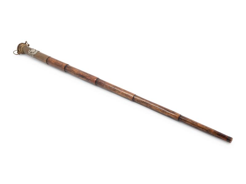An English Silvered Metal Mounted Brass Explorer's Walking Stick