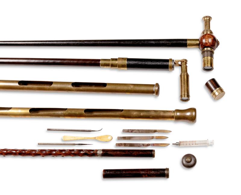 comprising two examples concealing telescopes, one concealing doctor's tools and one soil boring example.