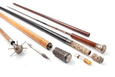 comprising a steel spring-loaded example; a carved bone example; a compass example and a sword-handled example.