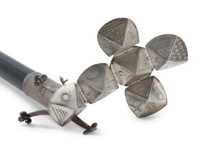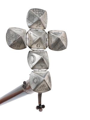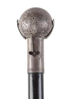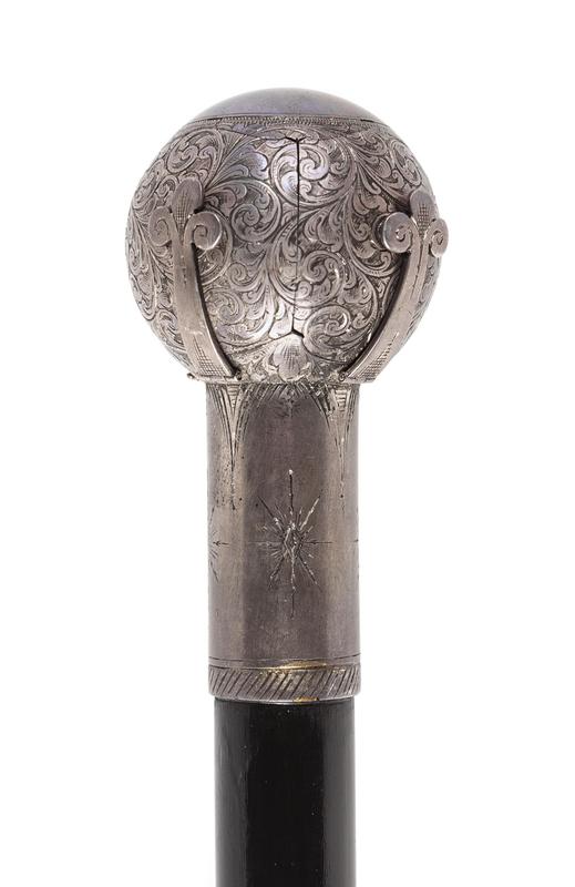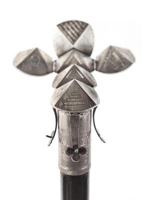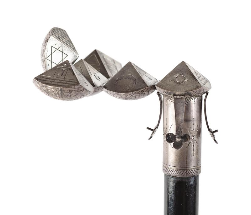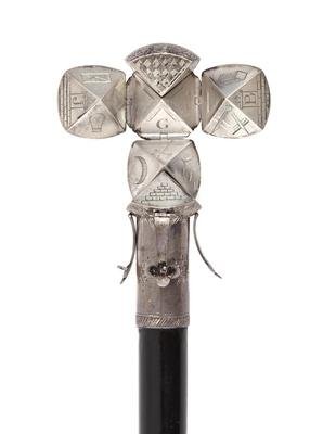 An English Silver-Plate Mounted and Ebonized Masonic Orb System Walking Stick