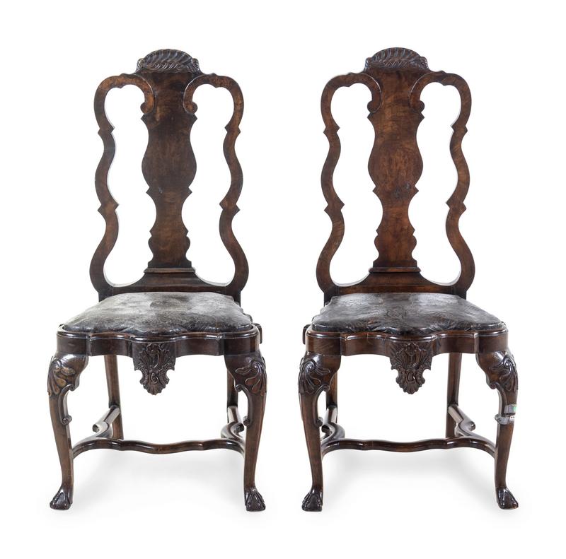 A Pair of Queen Anne Style Walnut Side Chairs