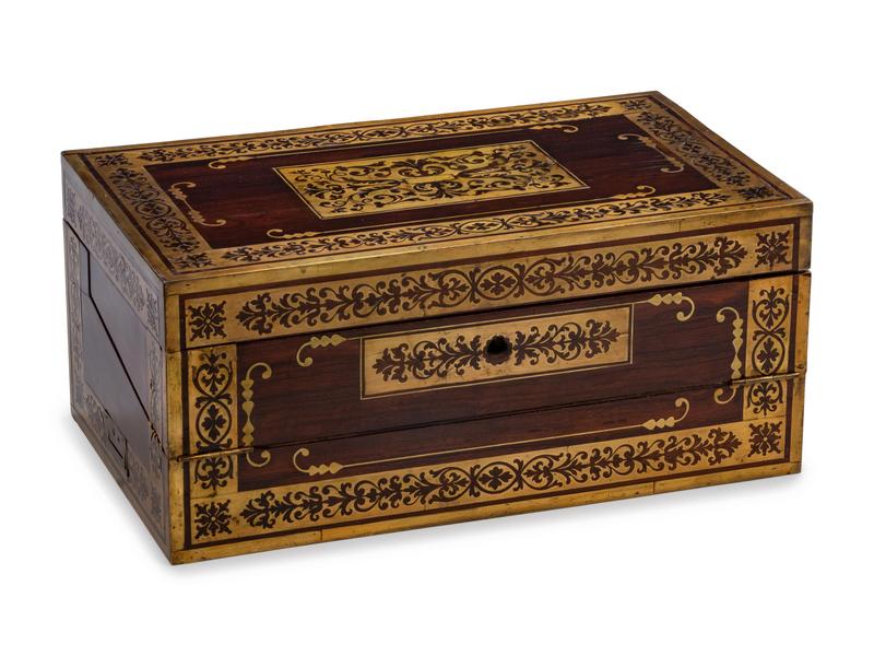 A Regency Brass Inlaid Rosewood Lap Desk