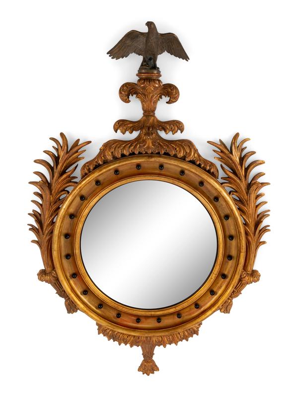 A Large Regency Style Giltwood Convex Mirror