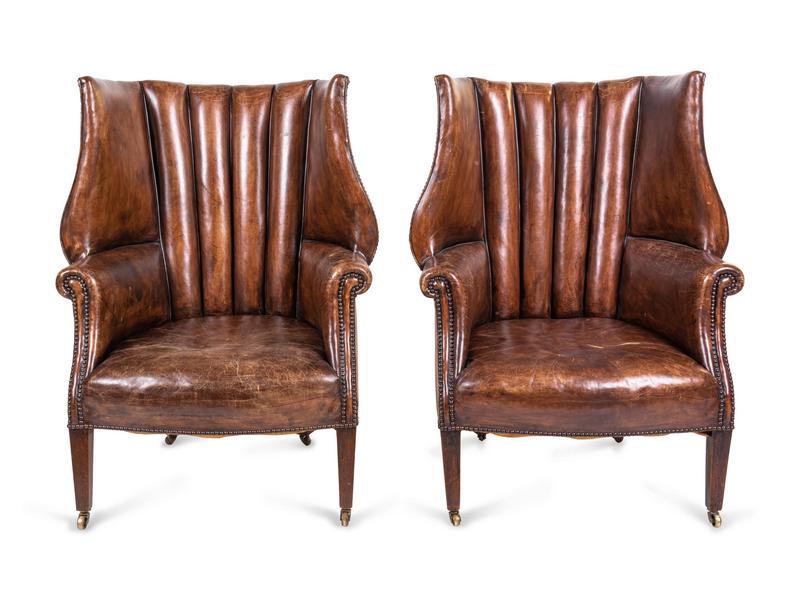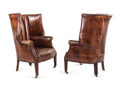 A Pair of Edwardian Leather-Upholstered Wingback Armchairs