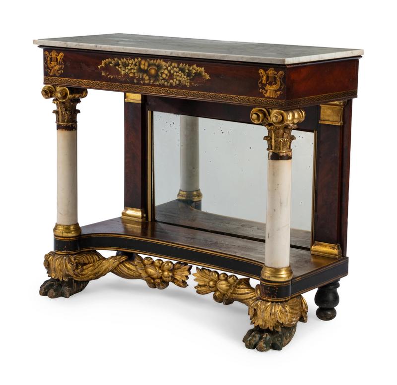 A Classical Painted and Parcel Gilt Mahogany Marble-Top Pier Table