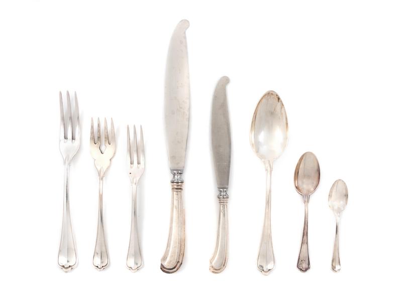 An Italian Silver Flatware Service and Two Florentine Gilt-Tooled Leather Flatware Cases