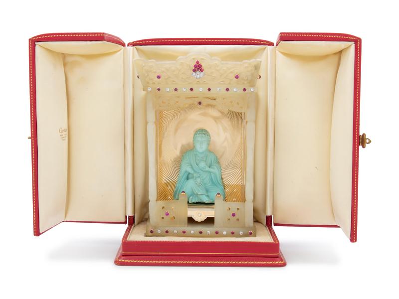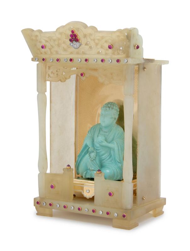 A Continental Hardstone, Gold, Gemstone and Turquoise Shrine