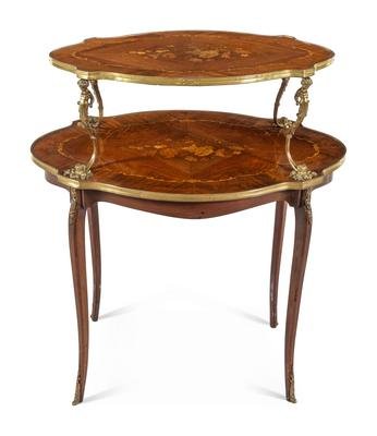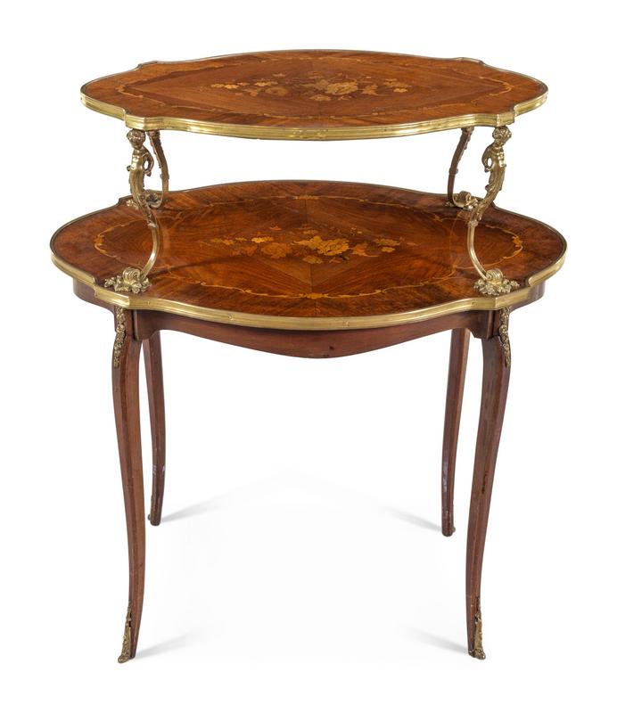 A Louis XV/XVI Transitional Style Gilt Bronze Mounted Marquetry Étagère
