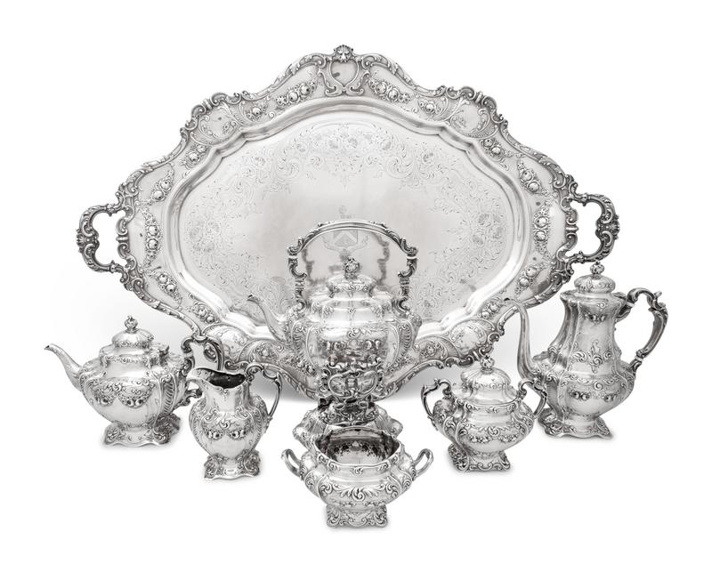 An American Silver Six-Piece Tea and Coffee Service with Tray