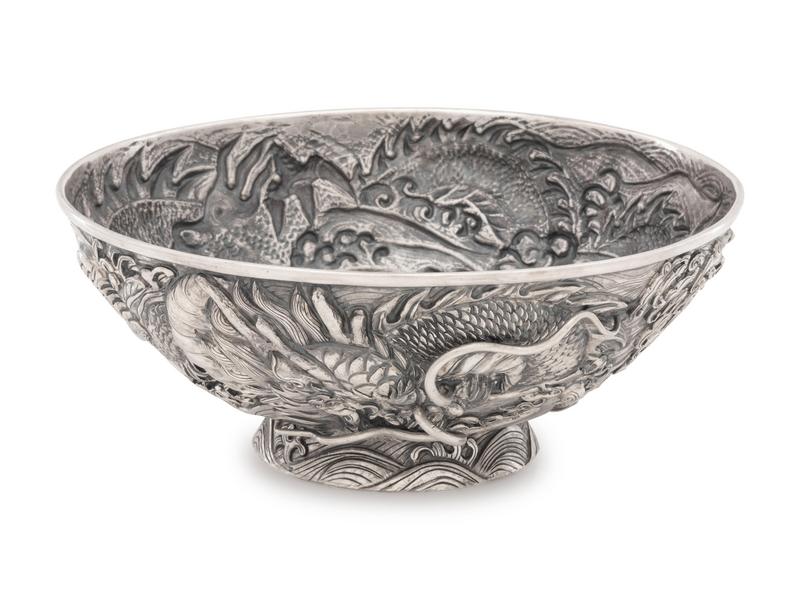 the body worked to show a writhing dragon chasing the flaming pearl among clouds.