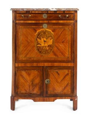 A Louis XVI Style Marquetry Marble-Top Secrétaire à Abattant