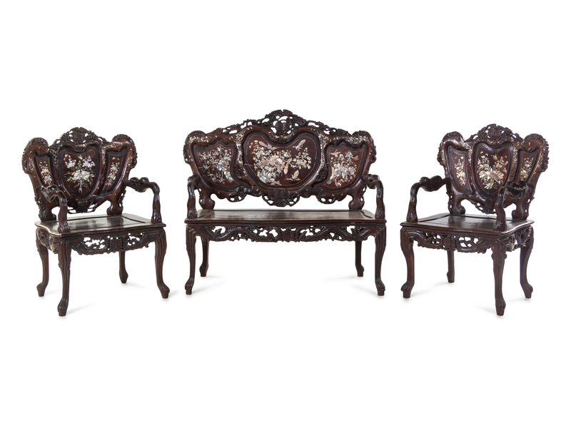 A Chinese Export Mother-of Pearl Inlaid Parlor Suite