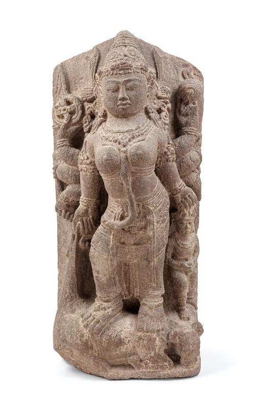 A Central Javanese Style Stone Stele of Durga Slaying the Buffalo Demon