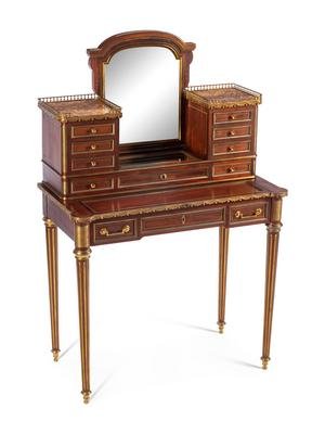 A Louis XVI Style Gilt Bronze Mounted Mahogany Bonheur du Jour