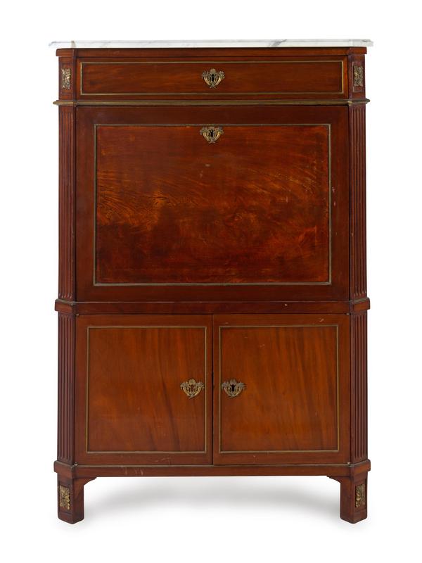 A Directoire Style Mahogany and Marble-Top Secrétaire à Abattant
