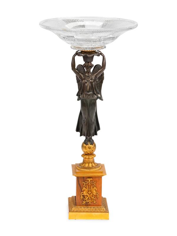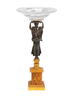 An Empire Style Gilt and Patinated Bronze Figural Compote