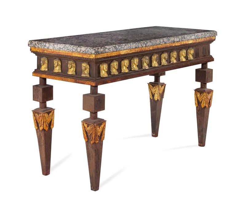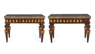 in the Egyptian Revival taste, each with a rectangular stone top.