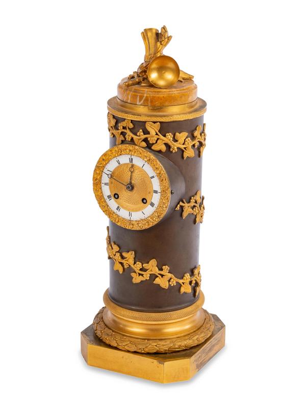 A Charles X Gilt and Patinated Bronze Cylindrical Clock