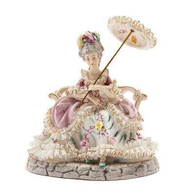 An Italian Painted Bisque Figure of a Seated Lady