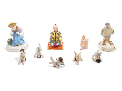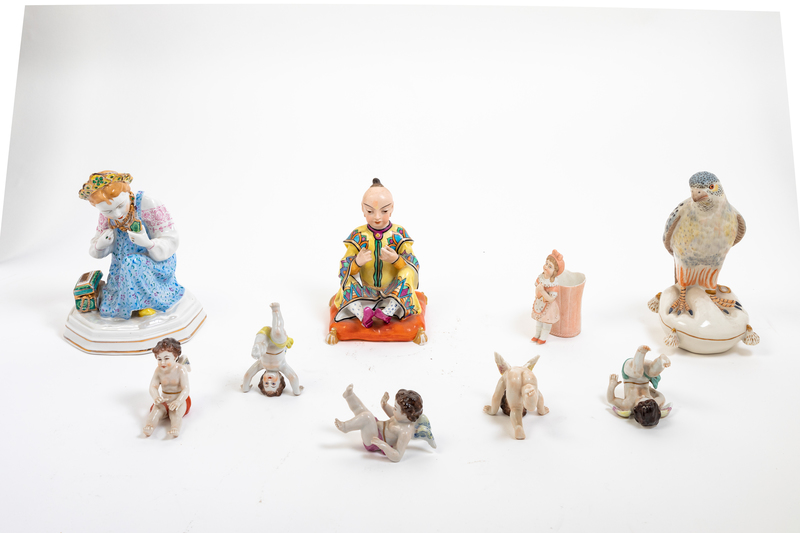 Group of Nine Figural Porcelain Articles
