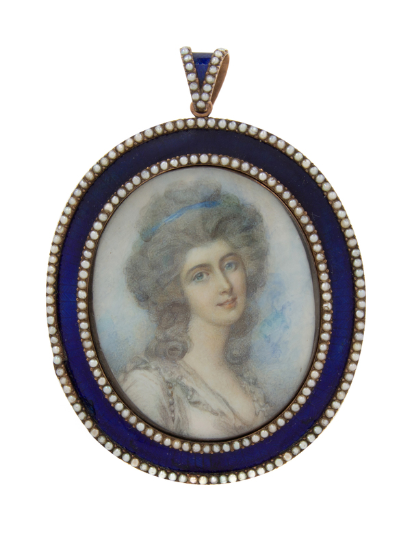 A Continental Enamel and Seed Pearl Decorated Portrait Miniature