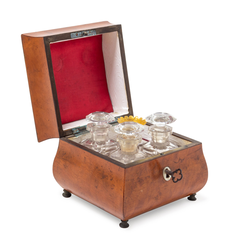 fitted with three cut glass decanters.
