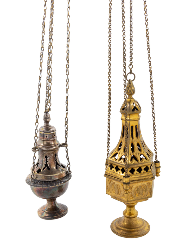 A Continental Brass Thurible and a Pewter Thurible