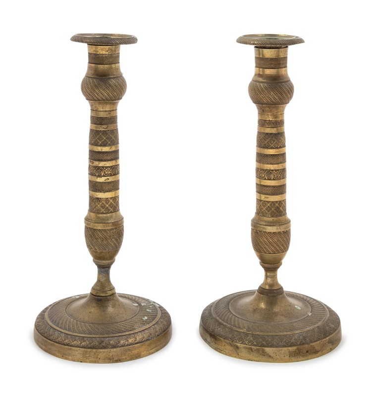 A Pair of Empire Style Brass Candlesticks