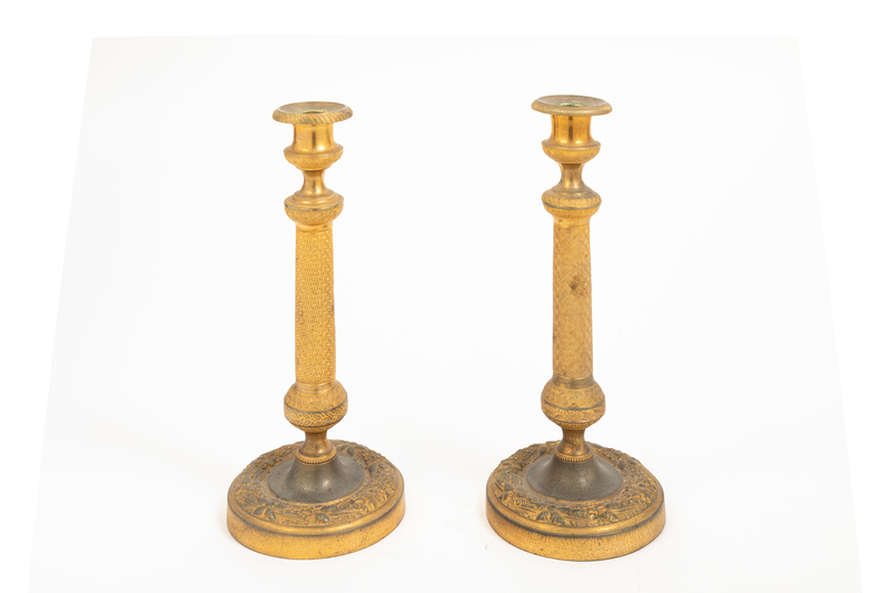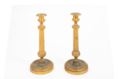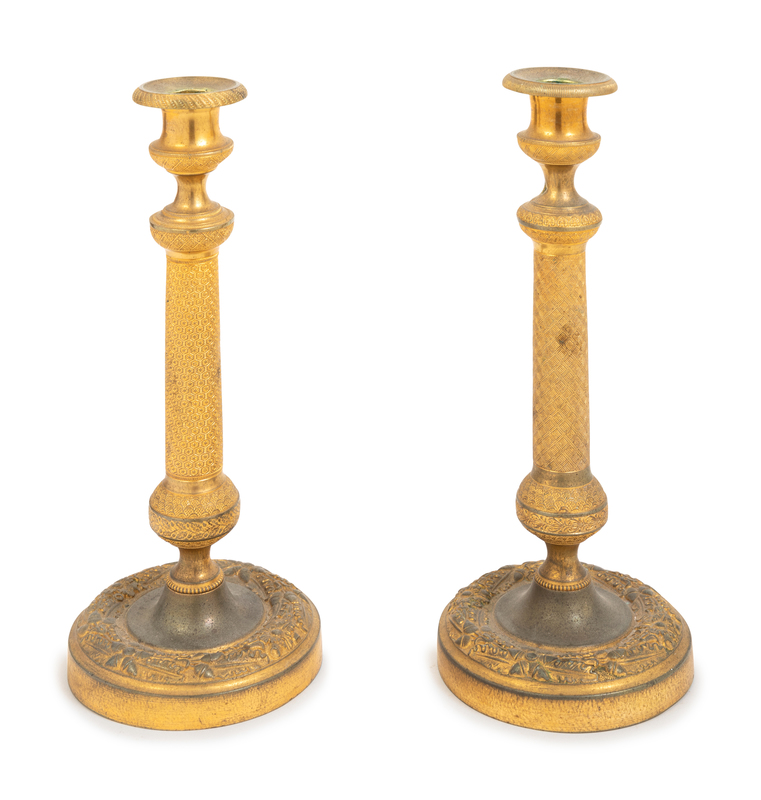 A Pair of Empire Style Gilt Bronze Candlesticks