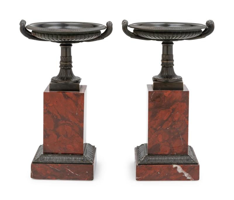 A Pair of Continental Bronze and Marble Table Ornaments