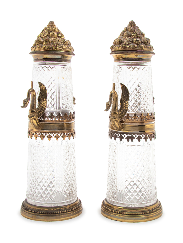 A Pair of Empire Style Gilt Bronze Mounted Cut Glass Vases