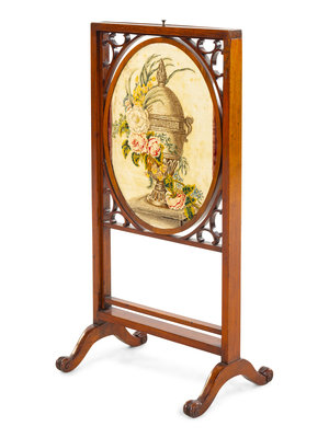A Victorian Needlepoint-Inset Mahogany Fire Screen
