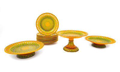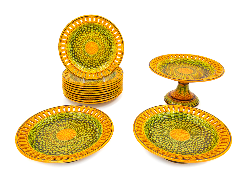 comprising 10 dessert plates and 3 cake stands, each impressed W&R/L to the underside.