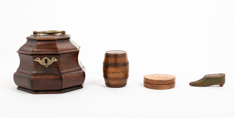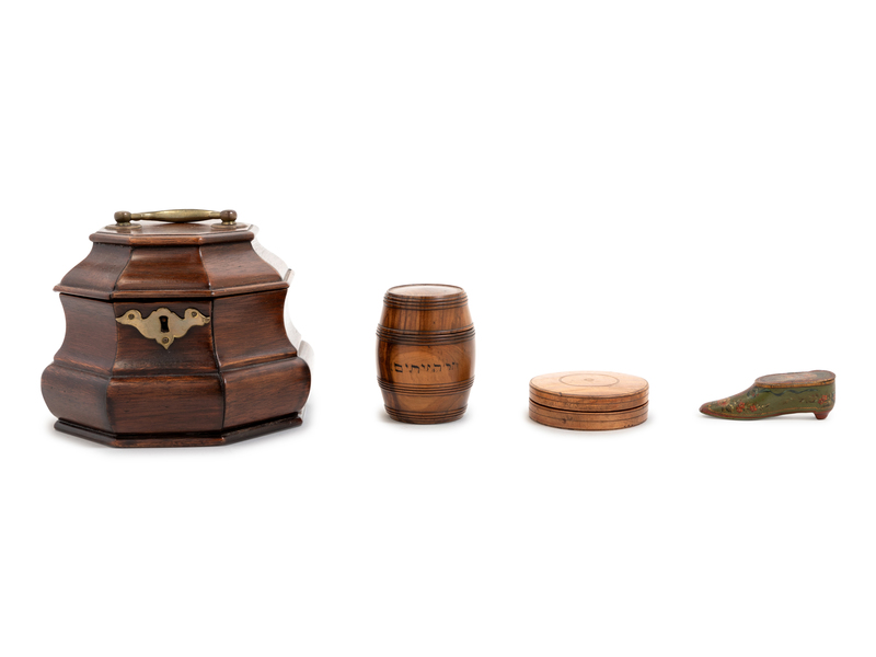 in the William and Mary taste, together with two treens and a painted metal vesta case.