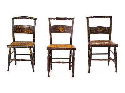 Three Grain-Painted and Gilt Stencil-Decorated Hitchcock Side Chairs